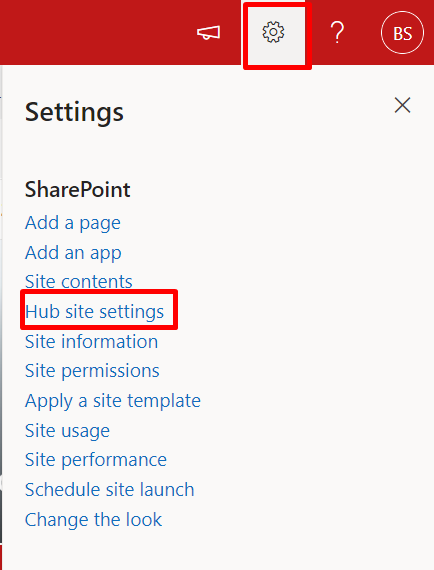 Go to the site which you register as a hub site. Click on Gear icon on top and click hub site settings.