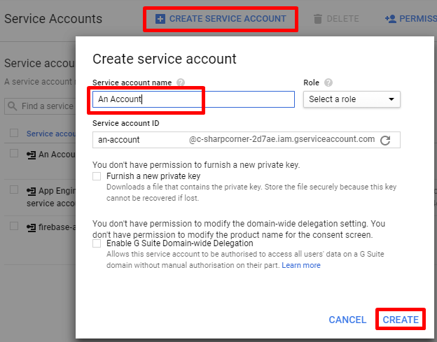 Go to https://console.developers.google.com/permissions/serviceaccounts