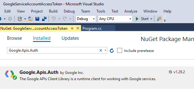 Now, let's retrieve Acess Token from the above-generated keys. I have taken Console Application here. Install Google.Apis.Auth NuGet package. It will add all the required dependencies.