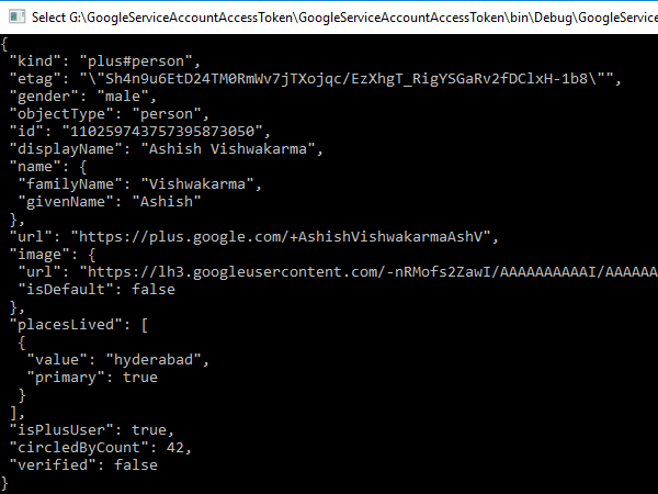 Let’s test it for my Google project. I have enabled Google Plus API, so I am requesting the given user’s profile here.