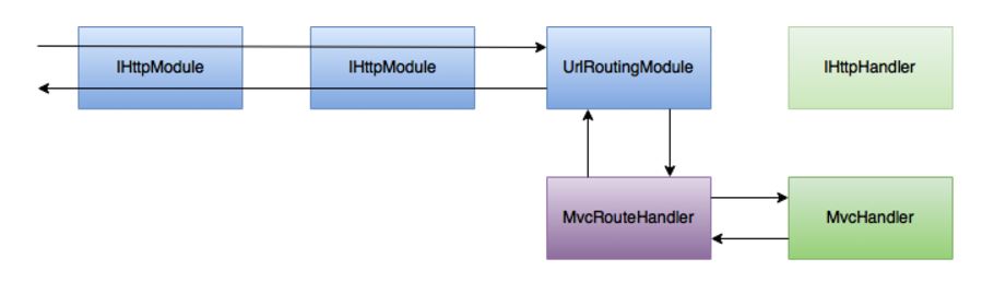 Routing is integrated with the pipeline as an IHttpModule and when a route was resolved, it would bypass the rest of the pipeline and delegate to the final IHttpHandler through a new factory-type interface, the IRouteHandler.