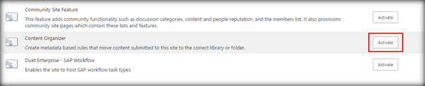 If we are using Record Center Template, it will be automatically present as Content Organizer feature is activated by default. If it is not present, enable the Site Feature named Content Organizer.