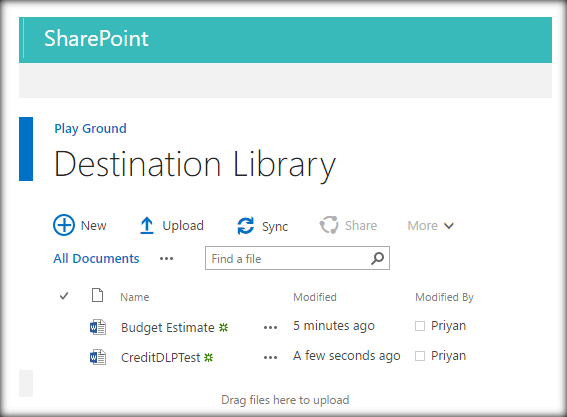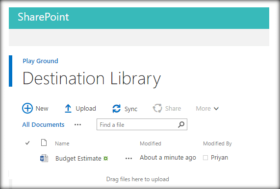 Going to the Destination Library, we can see that the document has reached here despite uploading it to the Drop Off Library.