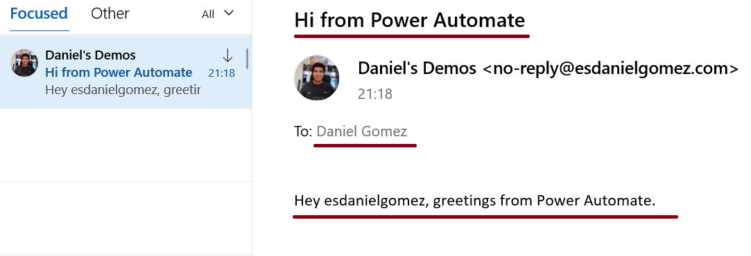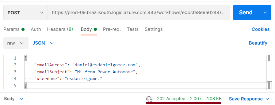 With all this, now we can call our flow through an HTTP post from any application. Here we can see an example from Postman and email as a result: