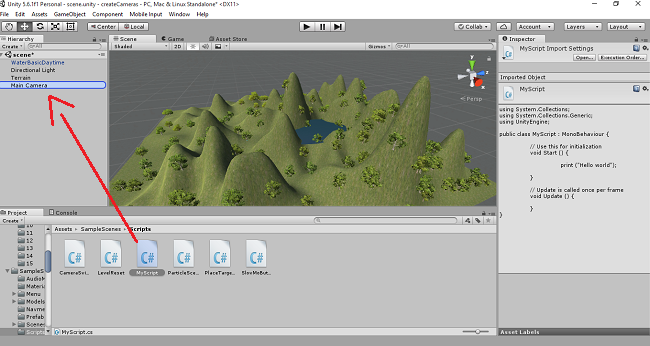 Drag and drop the "MyScript" into main camera.
