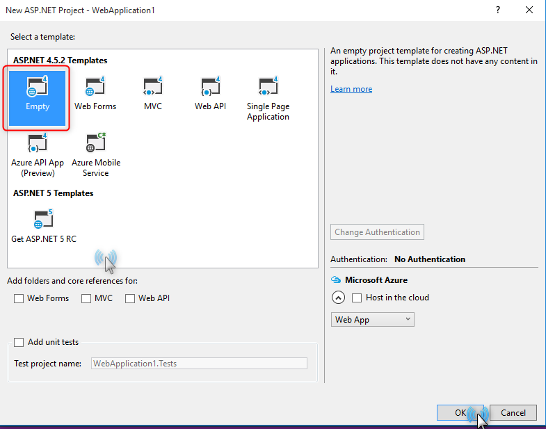 After clicking on OK button, the below dialog box will open. Here, select emptyan template and then click on OK button.