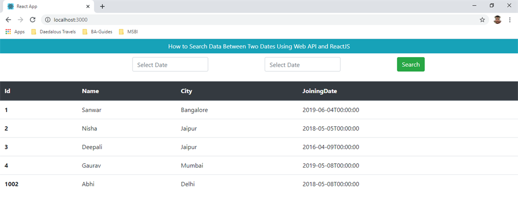 - How to Search Data Between Two Dates Using Web API and ReactJS