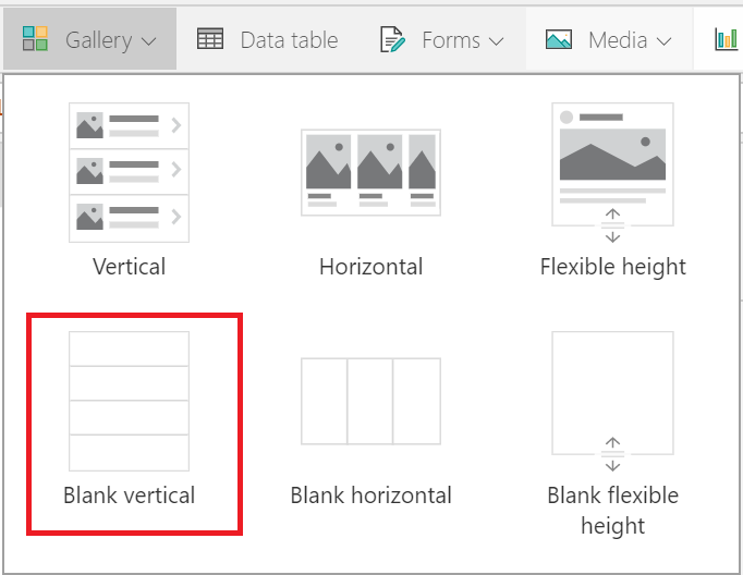 - On a New Screen, add a “Blank Flexible Height” Gallery control