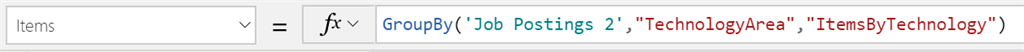 - Set the “Items” property of Child Gallery control as the GroupBy Collection of Parent Gallery