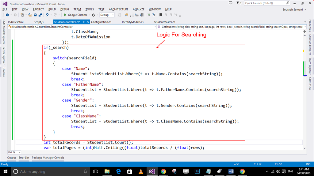 - StudentList = StudentList.Where(t => t.ClassName.Contains(searchString));