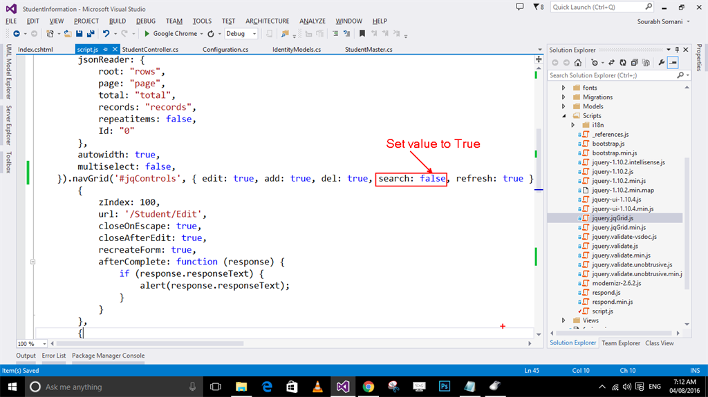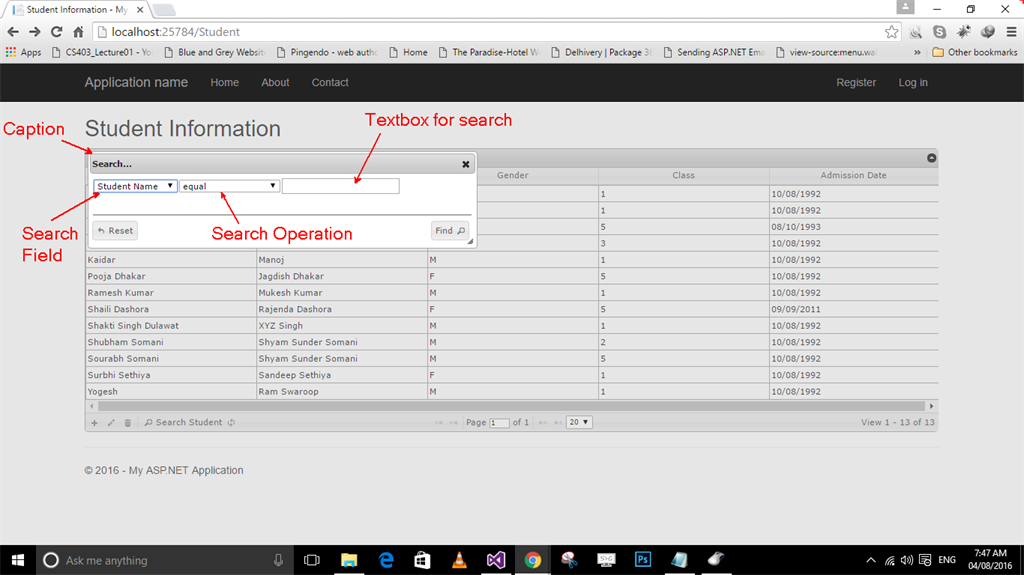 - public JsonResult GetStudents(string sidx, string sort, int page, int rows, bool _search, string searchField, string searchOper, string searchString)