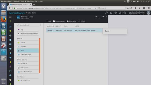 This article will help you to add locks for Access over Azure Data Lake Store Account.
