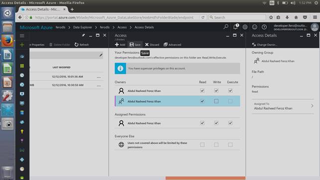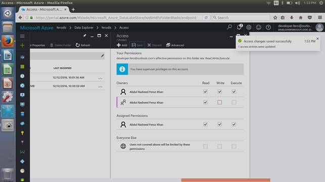 And now, the changes are saved towards the access permission for the file in the Data Explorer of Azure Data Lake Store Account.