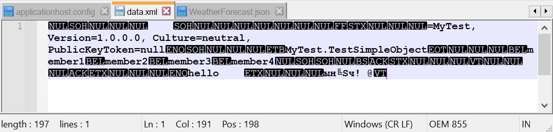 3, If you use BinaryFormatter, you will get the binary output like this,