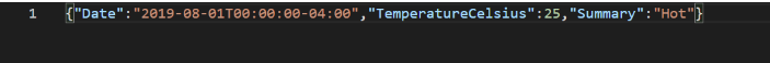 //{"Date":"2019-08-01T00:00:00-07:00","TemperatureCelsius":25,"Summary":"Hot"}