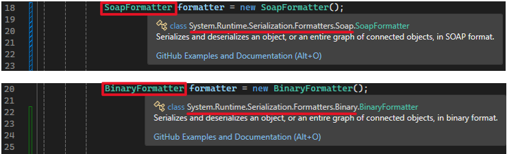 - BinaryFormatter class is from Namespace: System.Runtime.Serialization.Formatters.Binary