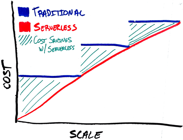 Figure 1: A simple yet clear difference in traditional vs serverless approach toward server management.
