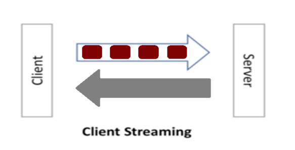 In contrast to server streaming, the client sends a stream of messages to the server, and the server responds with a single message. The server processes the entire stream before generating a response.