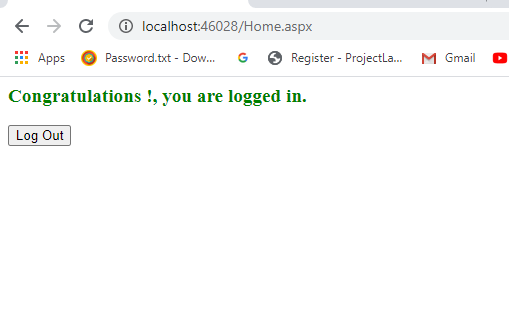 If you inspect the page, you will be able to view the ASP.NET_SessionId that has been created for your page. Notice that even if login and out of the sample application the ASP.NET_SessionId remains the same. This means at log out we are not removing the SessionID from our browser.
