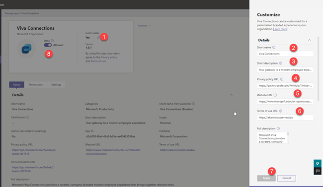 - Click on Customize and fill in all the information. Click on Apply. Allow the app to use at the organizational level