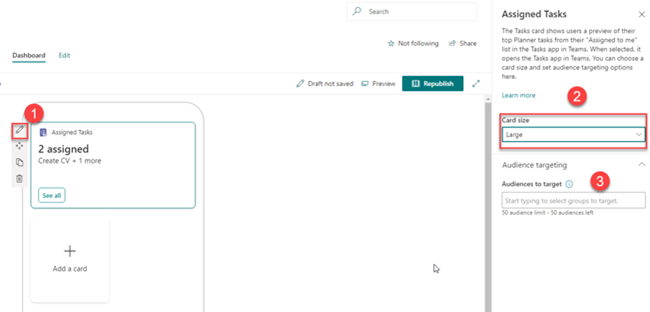 - We can also manage Card Size and Audience Targeting by configuring properties.