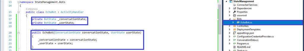 - public EchoBot(ConversationState conversationState, UserState userState)