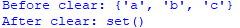 print(“After clear:”, set_example12)