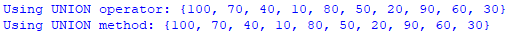 print("Using UNION operator:",setA|setB)
