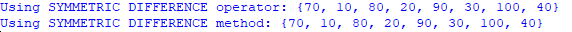 print("Using SYMMETRIC DIFFERENCE operator:",setA^setB)