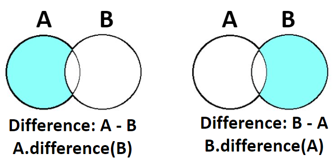 print("Using DIFFERENCE method (A-B):",setA.difference(setB))