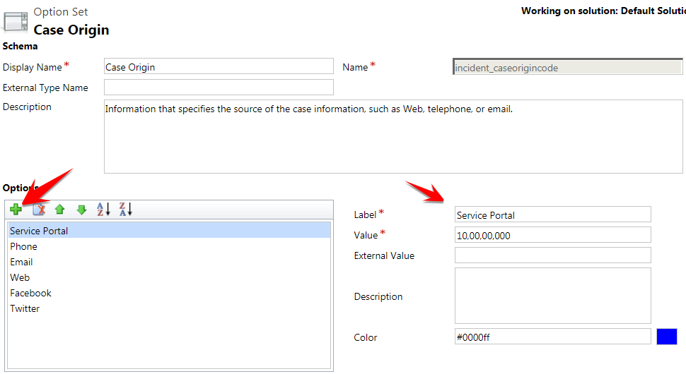 If you have worked with custom service module earlier then you might be aware of the Case Origin (caseorigincode) field which is an option set field. This field is used to configure case origin, for example, if the case is reported through phone, email, web etc. We can reuse this field to identify if the case is reported from the Customer Portal. Let’s see how we can implement this using the following steps,