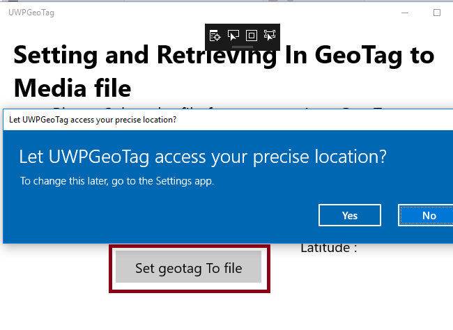 - private async void SetGeotag(object sender, RoutedEventArgs e) {
