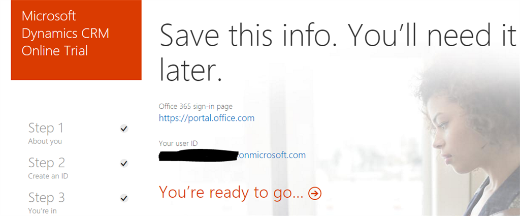 Step 2: Here we need to create CRM user and need to provide a unique name for our trial organization.