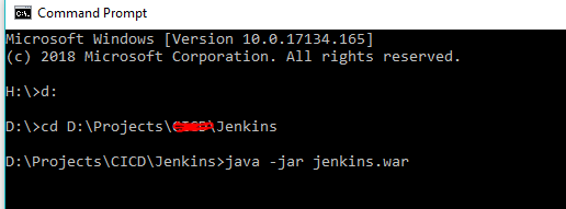 To start Jenkins, open the command prompt and go to the Jenkins folder, then type the below command.