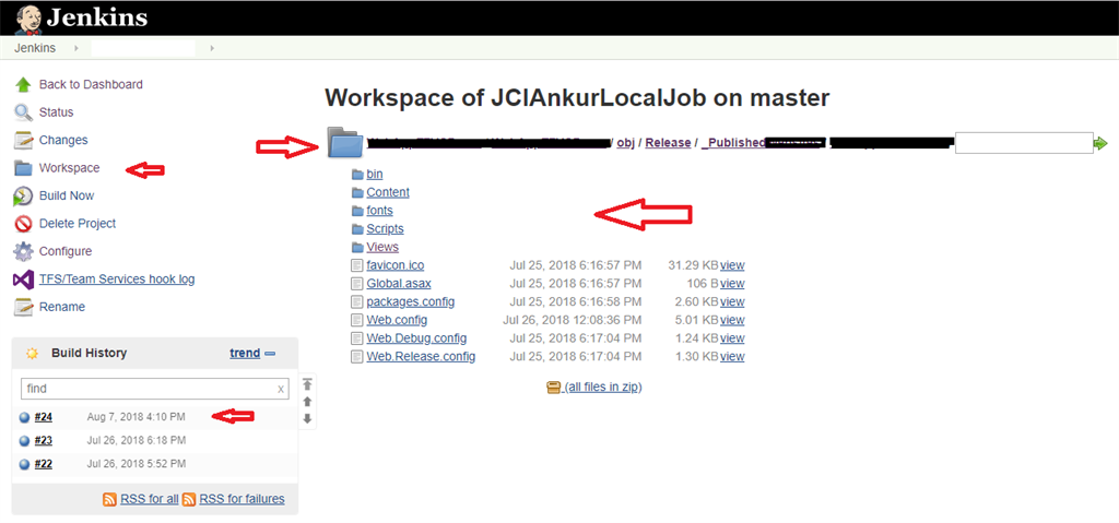 Once it's done, click on the build number and go to Workspace. You can see the latest Build code and files in the workspace as shown in the below screen.