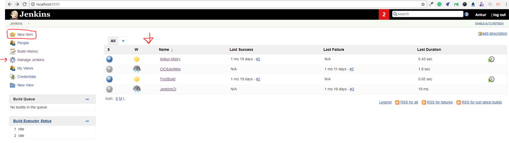 It will navigate you to the Jenkins Dashboard. Here, you can see all the previously created items plus you can create a new one.