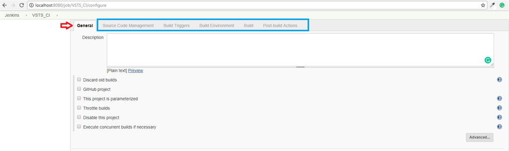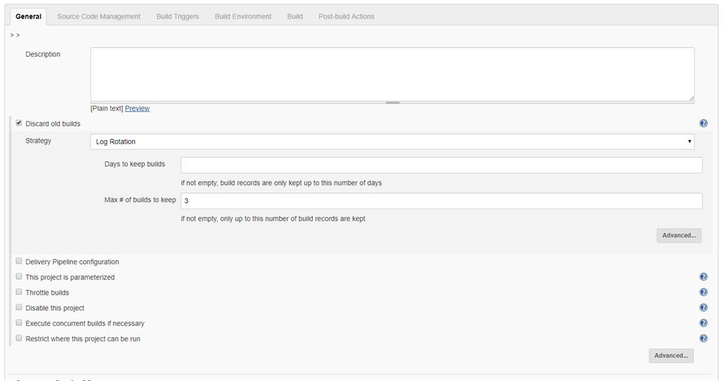 In the first tab, that is General, here you can enter the description of the Item and Check on discard old builds, it means it will automatically discard builds if they reach a certain age.
