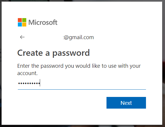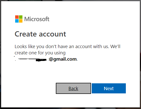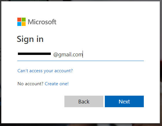 Enter your Microsoft Credentials or Create a new one if you don't have, Shown as per below screen.