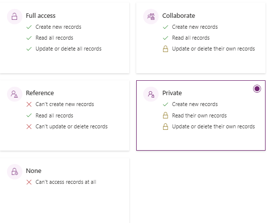 Let's explore some permission levels which are provided by Dataverse for Teams.