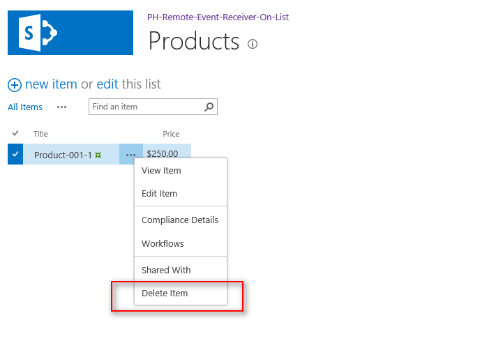 Since we registered the Event Receivers to handle “ItemAdded”, “ItemUpdated”, “ItemDeleted” only so none of the other Events would be delegated to Remote Event Receiver by SharePoint.