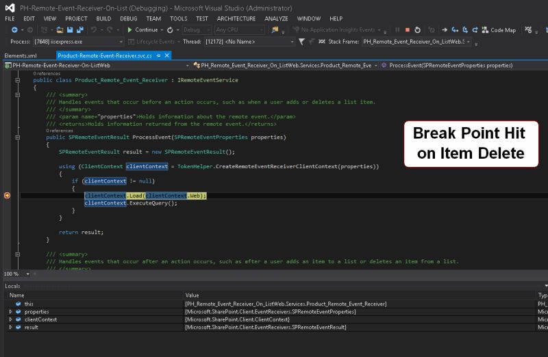Likewise we can see Break Point hit when Item gets deleted as highlighted in below steps