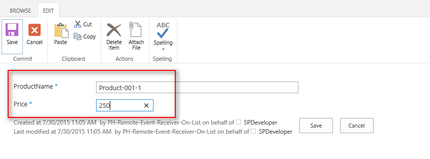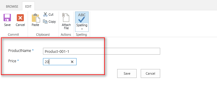 Now in order to test the Event Receiver, let’s create a test item in Products List as shown below: