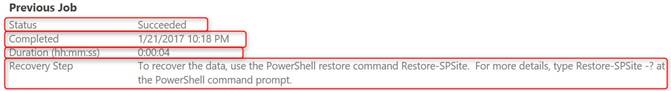 - Completed - This will display the date and time of the backup job. In our case, it is - 1/21/2017 1018 PM