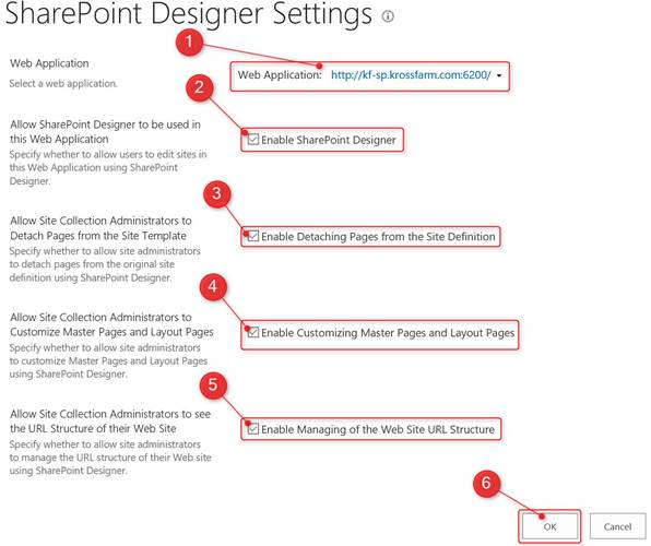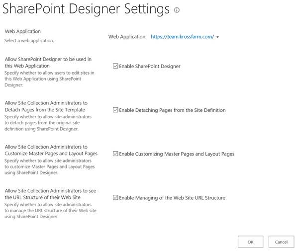 - Enable SharePoint Designer - Enable or disable the SharePoint Designer as per your usage.