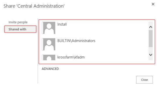 - On the pop up you will see the url of central admin and permission level.