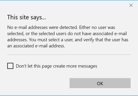 If no user is selected or selected user doesn’t have any email address then you will get this error.