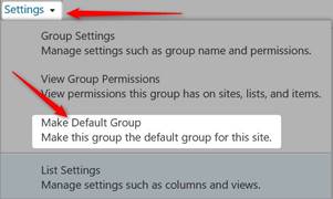 - Click on the Settings dropdown and click on Make Default Group.
