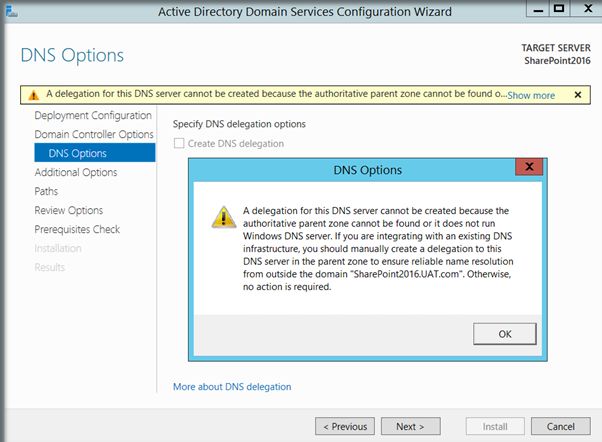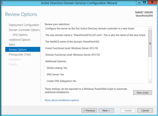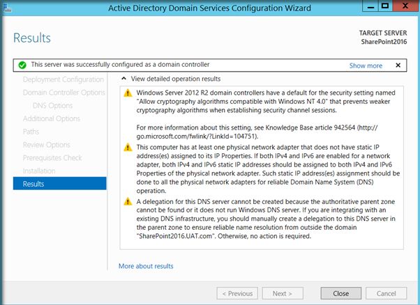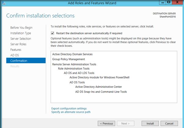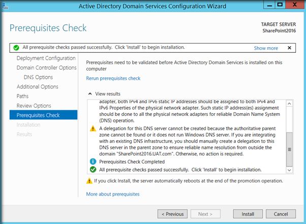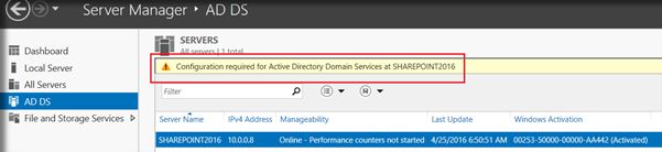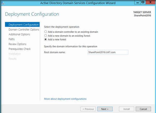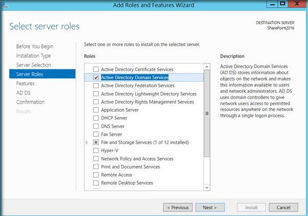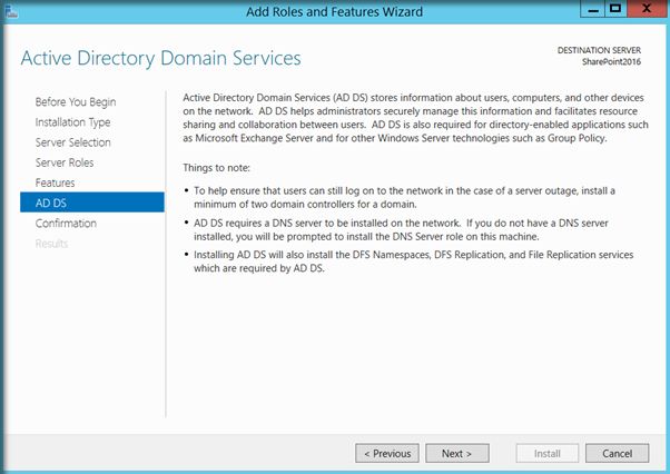 A complete SharePoint 2016 installation will require Active Directory Domain Services configured and registered with the Virtual Network. There are two main reasons why Active Directory Configuration is recommended before SharePoint installation.