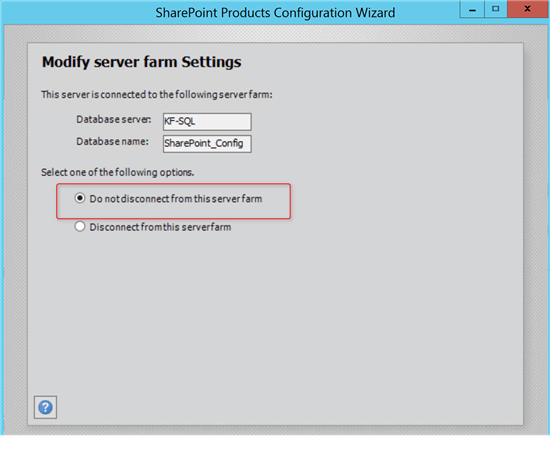 - On Modify Server farm settings page, select "Do not disconnect from this server farm" and click Next.