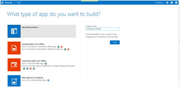 Click the NAPA Tool in SharePoint developer site and choose SharePoint 2013  Template,